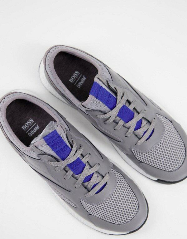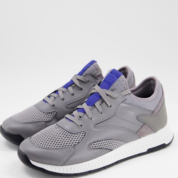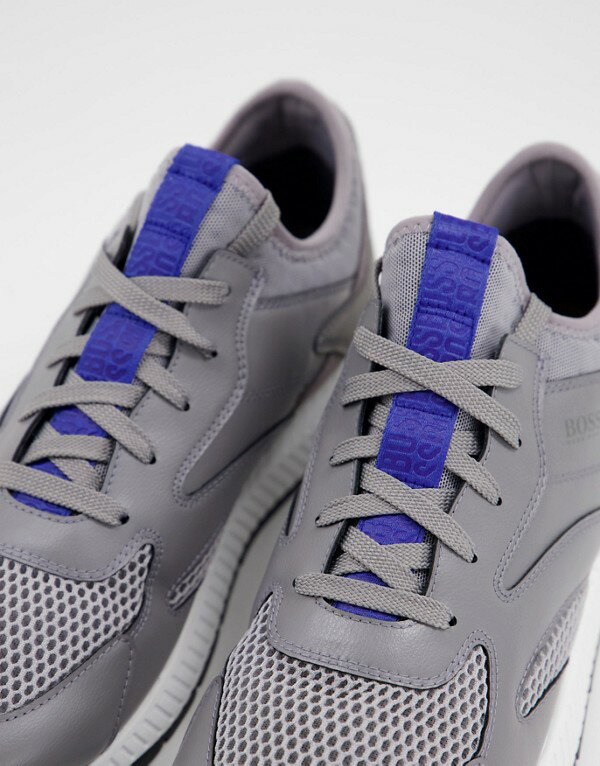 ヒューゴボス BOSS hugoboss HUGO BOSS グレーの軽量ソールを備えたBOSSTitaniumRunnリフレクティブディテールトレーナー 靴 メンズ 男性 インポートブランド 小さいサイズから大きいサイズまで