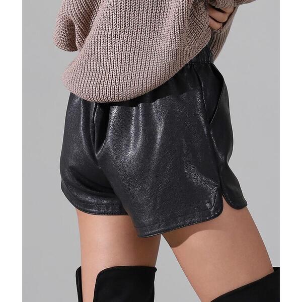 アナップのギャザーウエストフェイクレザーショートパンツ。