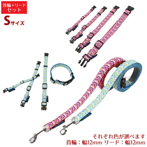 特徴 カラフルでおしゃれな北欧デザイン 首輪(幅12mm)とリード(幅12mm)のお揃いセット ピンク・ブルーの2色 それぞれお色を選べます。