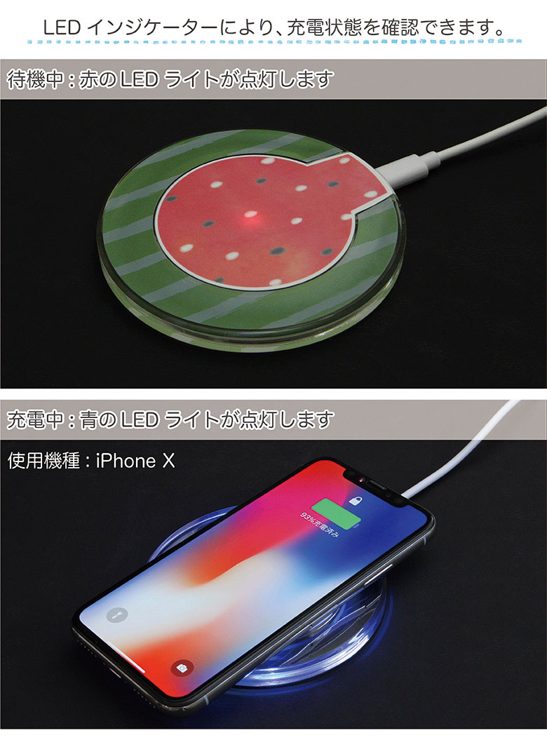[ラインナップ] アップ パターン ワンポイント名称 スイカ ワイヤレスチャージャー 対応機種 iPhone XやGalaxy S8など、ワイヤレスが充電が可能なiPhone、Galaxy対応機種の詳細について適合表をご確認ください。