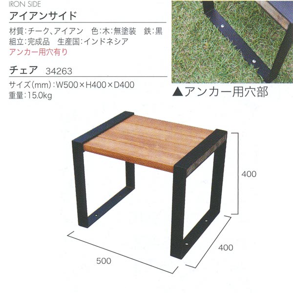 ジャービス商事 IRON SIDE CHAIR アイアンサイドチェア チーク/アイアン 無塗装 34263 1脚