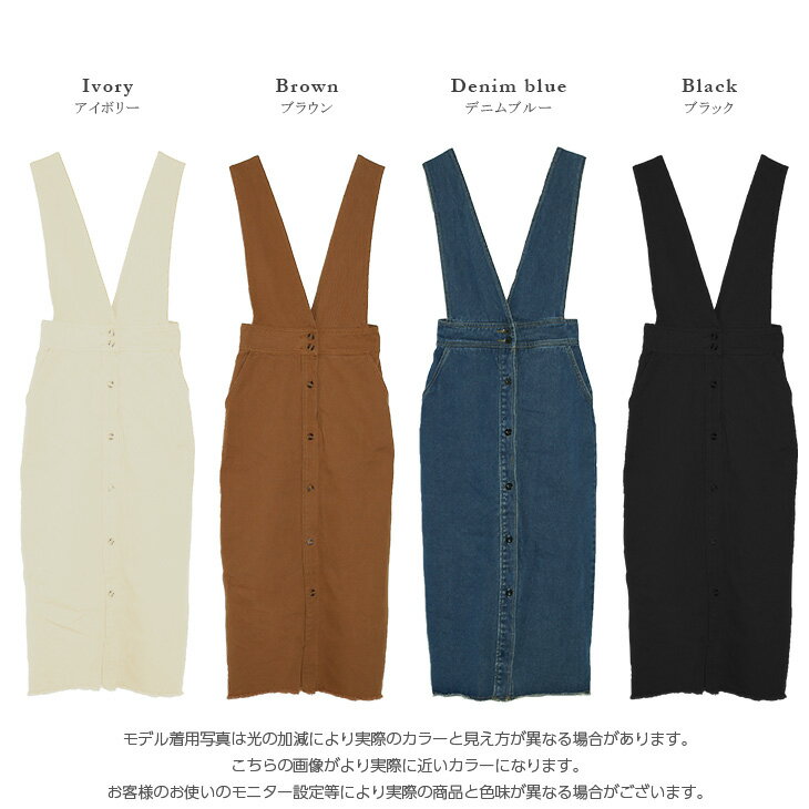 フロントボタン ジャンパースカート レディース オールインワン サロペット ワンピース タイト スカート 大人 きれいめ 楽ちん ボトムス 可愛い 無地 20代 30代 40代 50代 デート お出かけ 遊び 韓国ファッション カジュアル リラックス デニムブルー ブラック ブラウン アイボリー S M L サイズ クラシカル Iライン ロングシーズン 綿 細身 シルエットITEMSPECカテゴリレディース > ワンピース > オールインワン/サロペット実寸【S】ウエスト:66cm / ヒップ:88cm / 着丈:123cm / スカート丈:87cm【M】ウエスト:70cm / ヒップ:92cm / 着丈:125cm / スカート丈:89cm【L】ウエスト:74cm / ヒップ:96cm / 着丈:127cm / スカート丈:91cm素材コットン,ポリエステル生産国中国カラーデニムブルー、ブラック、ブラウン、アイボリーご注意点■モニターの都合上、掲載写真と実際の色が異なる場合がございます。