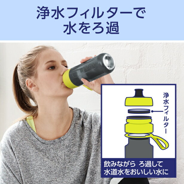 ●吸っても、スクイーズしても、コップに注いでも飲める、持ち運びできるボトル型浄水器。