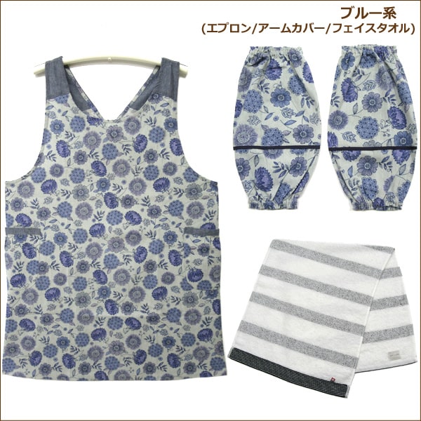 レディース ギフトセット B ボタニカル エプロン アームカバー フェイスタオル 3点セット フリーサイズ ブルー系 パープル系 ベージュ系 21-2106/21-2110 set0967 宅配便送料無料♪