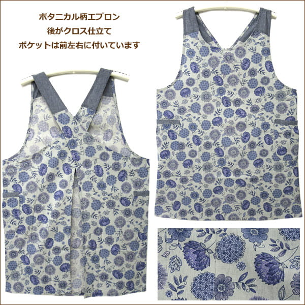 エプロン ※後がクロス仕立てになっているオシャレなバックシャンスタイル(サイズフリーで着れる後ろクロスのデザイン)!ポケットは前左右に付いています。