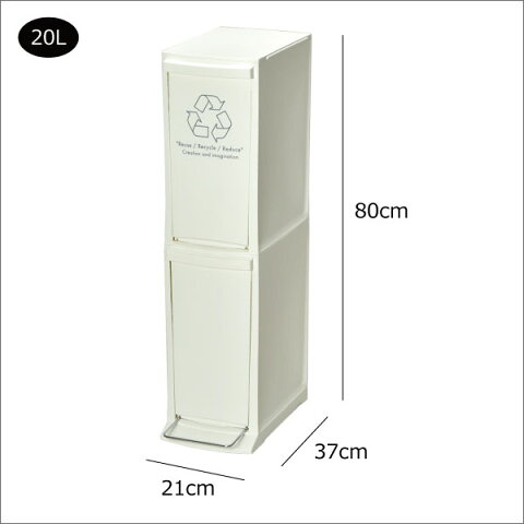 ゴミ箱 おしゃれ 北欧 2分別 スリム 2段 縦型 約幅20cm ふた付き フラップ式 ペダル式 キッチン 20リットル 隙間収納 省スペース 冷蔵庫横 袋が見えない 中身隠す インテリア雑貨 シンプル ホワイト 白 角型 生ゴミ 薄型 リビング 蓋 丸洗い( 分別ダストボックス 20L )