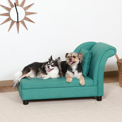 【メーカー直送】不二貿易 ペットカウチソファ(クッション付) GR グリーン幅83×奥行43×高さ48.5cm
