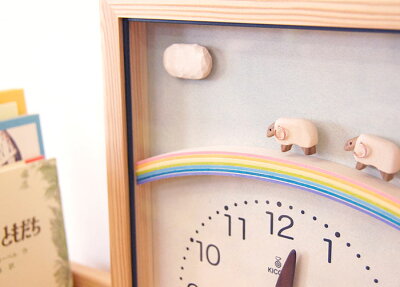 K-210 【New!!】ひつじと虹の電波時計【送料無料】信州 手作り 国産 電波時計 最高に可愛い時計ができました! ある雨上がりの日、羊たちはついに空の友達に逢いに行く旅に出発しました。